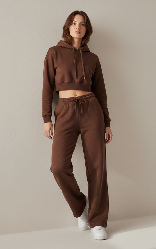 Crop Hoodie Tracksuit for Women – Sporty & Comfortable Lounge Wear
