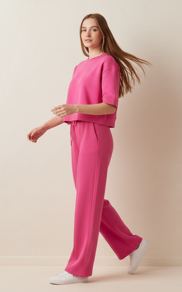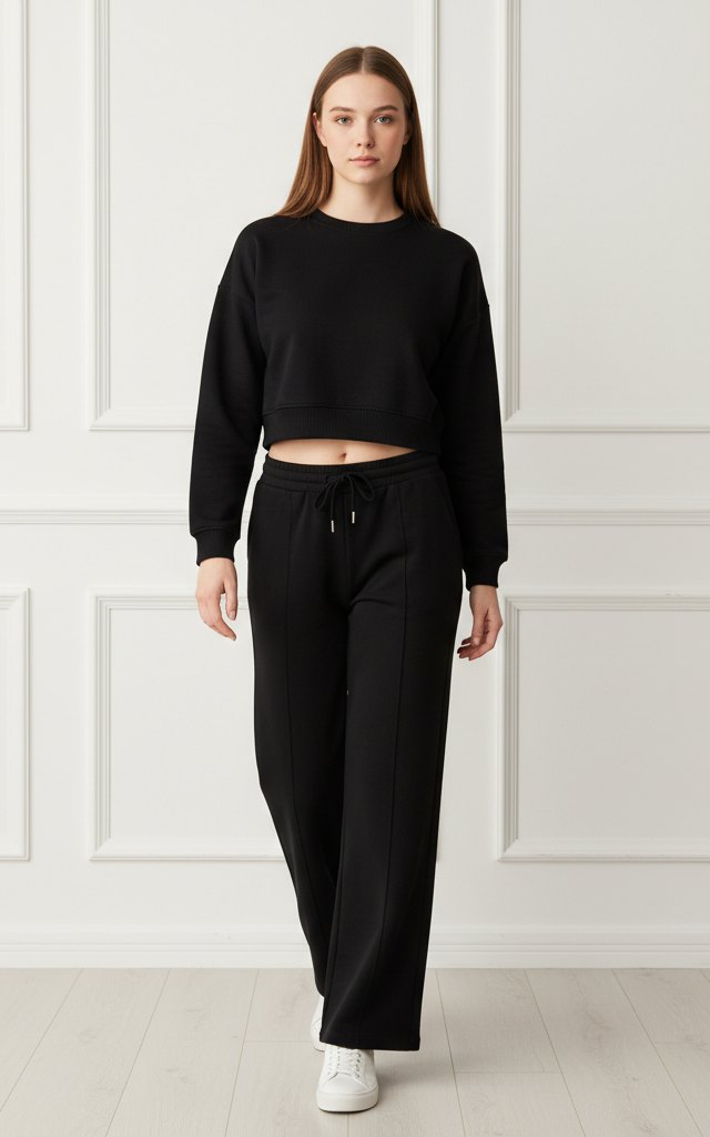 Whether you’re heading to the gym, lounging at a home, or stepping out in the style, the SKM essential crop Sweat Suit delivers warmth, flexibility, and a clean silhouette. Made from warm and cozy fleece, this is perfect for casual wear, lounge days, and workouts.
