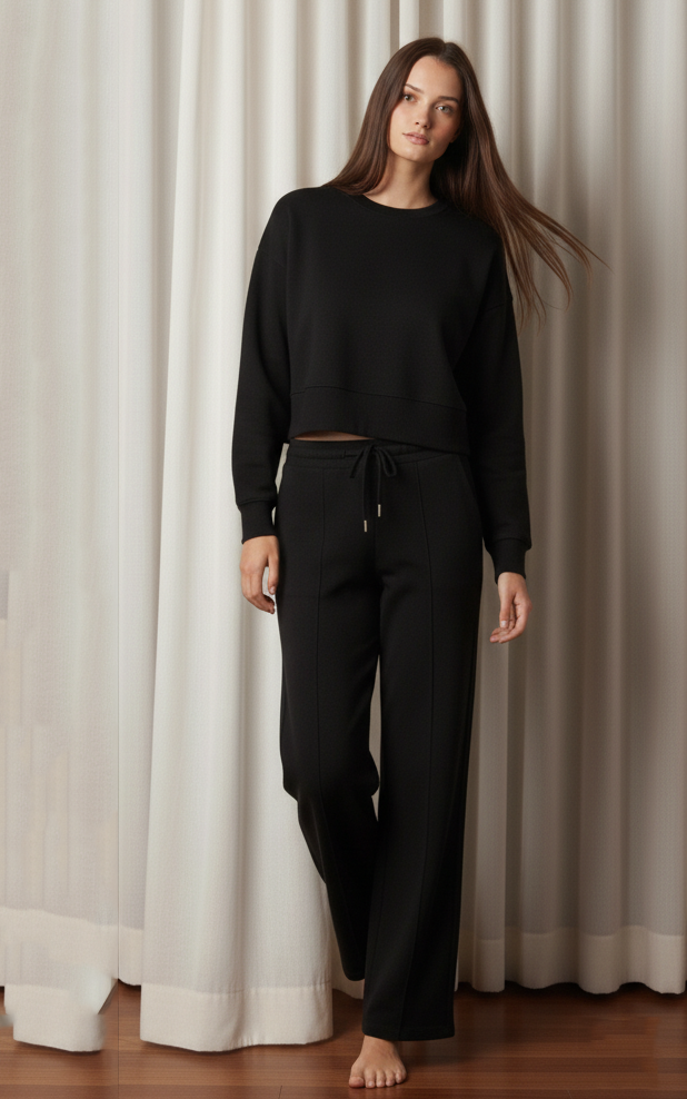 Whether you’re heading to the gym, lounging at a home, or stepping out in the style, the SKM essential crop Sweat Suit delivers warmth, flexibility, and a clean silhouette. Made from warm and cozy fleece, this is perfect for casual wear, lounge days, and workouts.