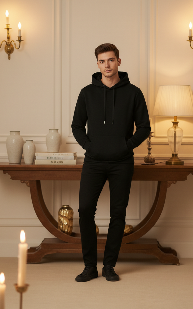 Black Men’s Hoodie Tracksuit 2 Piece Set Comfortable Cotton