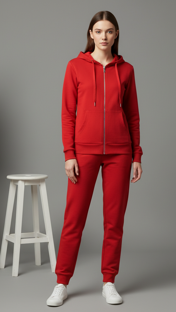Red Zipper Hoodie Tracksuit Women with Jogger Set - Extra Premium Cotton
